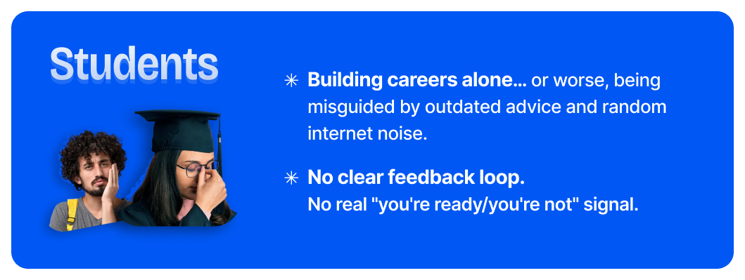 Intangible helps colleges and students build what hiring teams actually need: proof. Not just marksheets and resumes, but verified signals—projects, peer feedback, professor validation, and EQ + cultural-fit indicators that show real potential.